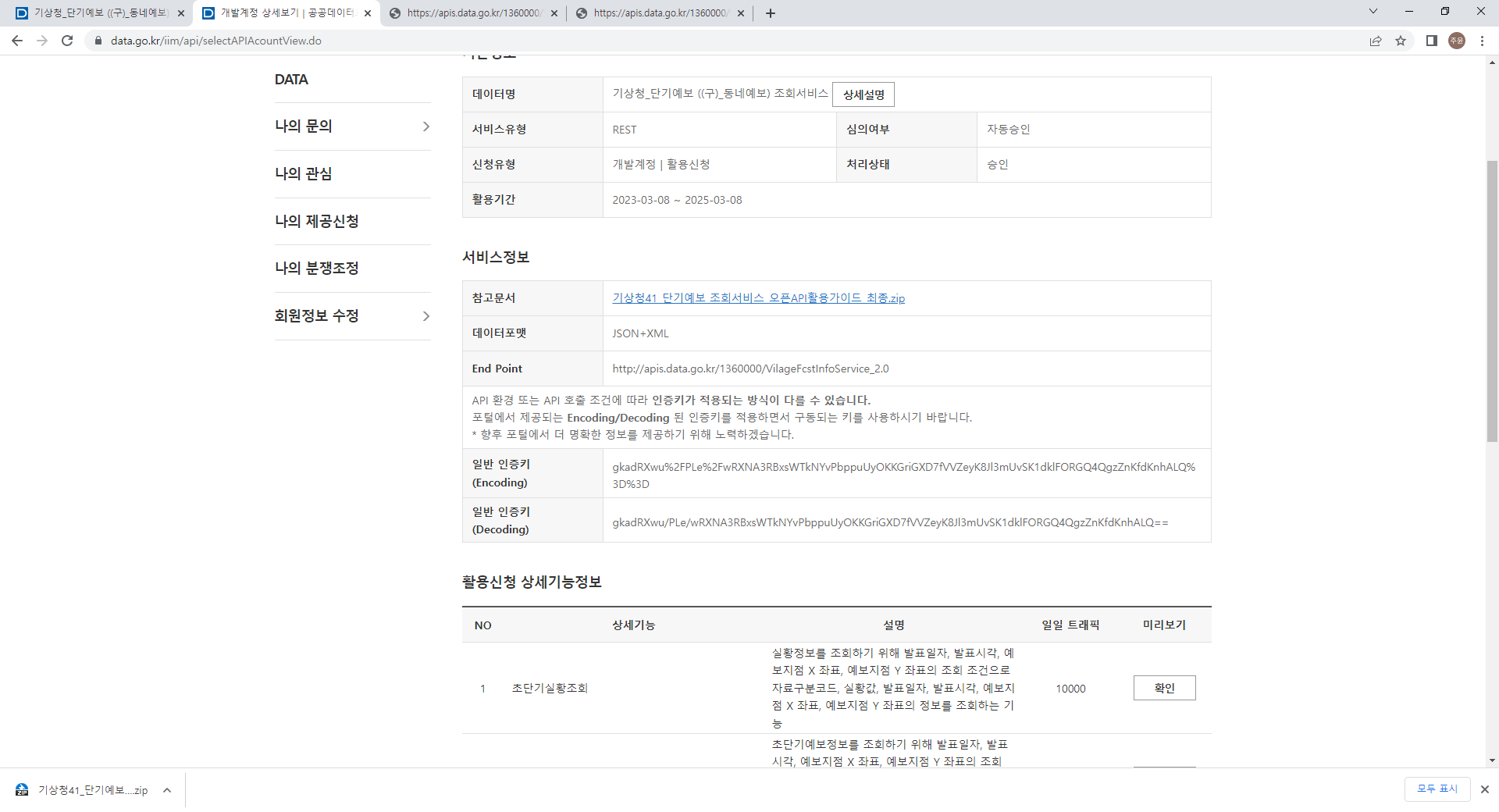 가입 후 기상청 예보 서비스 신청 후