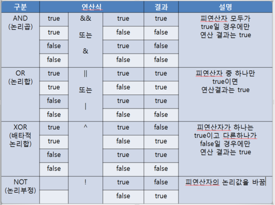 논리연산자의 피연산자는 boolean타입만 사용할 수 있습니다.